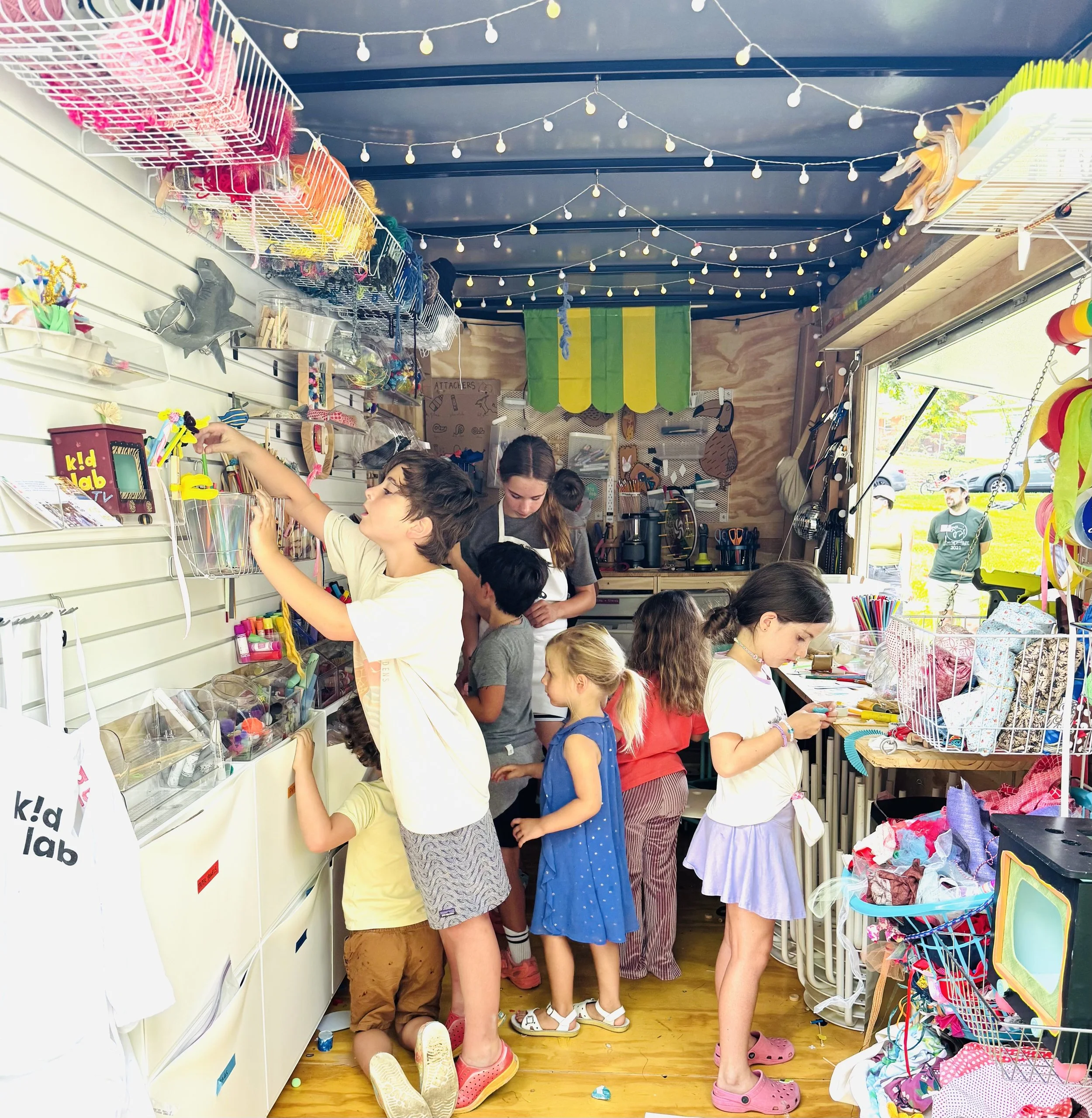 Kid Lab is a stand-alone 12-foot trailer, fully outfitted with creative supplies and materials.